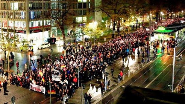 Νωρίτερα αυτή την εβδομάδα, περίπου 17.500 Γερμανοί βγήκαν στους δρόμους της Δρέσδης για να διαμαρτυρηθούν για την αυξανόμενη ισλαμοποίηση της χώρας. Η ομάδα, «Πατριώτες Ευρωπαίοι κατά της Ισλαμοποίησης της Δύσης», ή Pegida, (δες εδώ) έχει αυξηθεί κατά τις τελευταίες εβδομάδες, και λέει ότι άρχισε διαμαρτυρίες για την αντιμετώπιση της εξάπλωσης του ριζοσπαστικού Ισλάμ στην Ευρώπη. Σύμφωνα με την Huffington Post, οι διαμαρτυρίες συνεχίζονται κάθε εβδομάδα από τον Οκτώβριο, με την πρόσφατη διαμαρτυρία να είναι η μεγαλύτερη που έχει καταγραφεί μέχρι σήμερα.