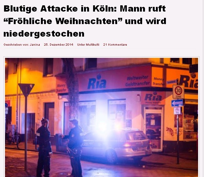 Τα νέα από αυτό το περιστατικό έρχονται να προστεθούν σε μια άλλη πρόσφατη είδηση ότι ένας Γερμανός μαχαιρώθηκε στην πλάτη επειδή ευχήθηκε σε έναν μουσουλμάνο άνδρας και σε δύο γυναίκες «Καλά Χριστούγεννα». Σύμφωνα με το Nez Planet, το 34χρονο θύμα δέχτηκε ξαφνικά επίθεση από πίσω και υπέστη περικοπές στο κεφάλι και την πλάτη του. Και οι τρεις μουσουλμάνοι διέφυγαν μετά την επίθεση.