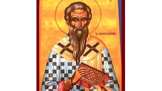 Λόγους ζωῆς Πάτερ σοφὲ κεκτημένος, τὰς διανοίας τῶν πιστῶν καταρδεύεις, καὶ καρποφόρους χάριτι δεικνύεις ἀεί, τῶν αἱρετιζόντων δέ, κατακλύζεις τὰς φρένας, χάριν ἀναβλύζων τε, ἰαμάτων ἐκπλύνεις, παθῶν παντοίων ῥύπον ἀληθῶς, ἱερομύστα θεόφρον Ἀμβρόσιε.