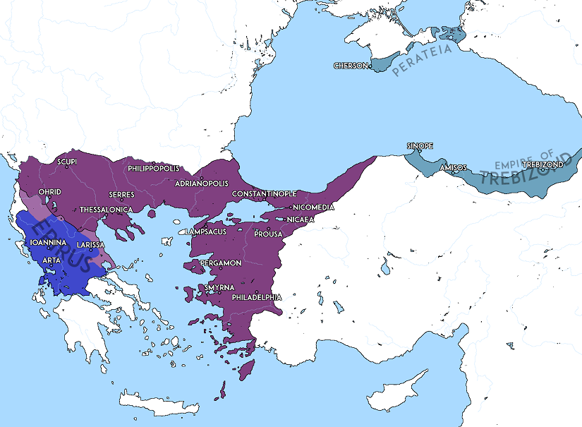 Από την στιγμή που ανήλθε στον θρόνο της Νίκαιας, ο Μιχαήλ Παλαιολόγος είχε να αντιμετωπίσει την εχθρική συμμαχία της Ηπείρου και των Φράγκων. Η νικηφόρα μάχη της Πελαγονίας συνέτριψε τα όνειρα της Ηπείρου, οι ακόλουθες όμως προσπάθειες για ανάκτηση της κεντρικής και νότιας Ελλάδας έπεσαν στο κενό. Ιδιαίτερα σημαντική ήταν η αιχμαλωσία του πρίγκηπα της Αχαΐας, Γουλιέλμου Β’ Βιλεαρδουίνου, ο οποίος φυλακίστηκε επί τρία χρόνια και εξαγόρασε την ελευθερία του με τρία κάστρα της Πελοποννήσου, της Μονεμβασιάς, της Μάνης και του Μυστρά.
