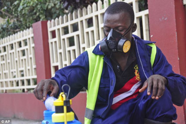 Κυβερνητικός υπάλληλος αναμιγνύει απολυμαντικό ώστε να ψεκάσει τους δρόμους της Monrovia σε μία προσπάθεια να τεθεί υπό έλεγχο ο ιός Ebola