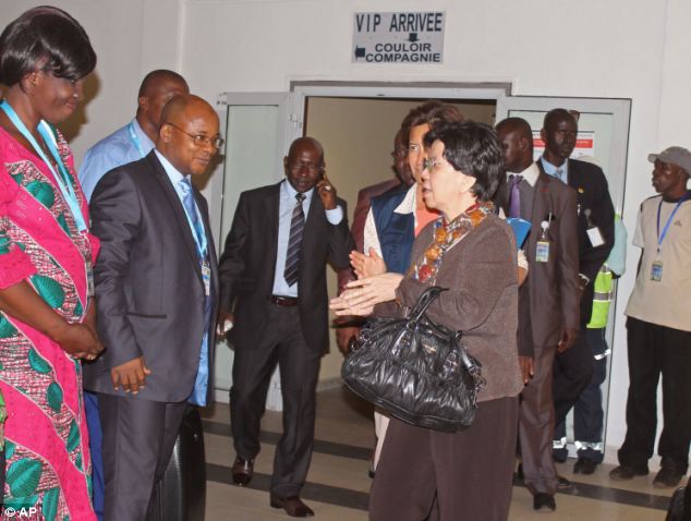 Η Δρ. Margaret Chan καταφθάνει στο Αεροδρόμιο Conakry για την πραγματοποίηση συνομιλιών με τους ηγέτες της Γουινέα, της Sierra Leone, και της Λιβερία σχετικά με την επιδημία του ιού Ebola
