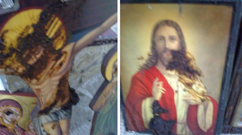 Σημαντικό το γεγονός ότι ενώ υπήρχε και ένα μικρό παγκάρι που οι πιστοί βάζουν χρήματα οι βέβηλοι δεν το άνοιξαν ούτε έκλεψαν κάτι. Το μόνο που τους ενδιέφερε φαίνεται ήταν αυτή η τραγική και αισχρή πράξη που μόνο οργή και αγανάκτηση προκαλεί.
