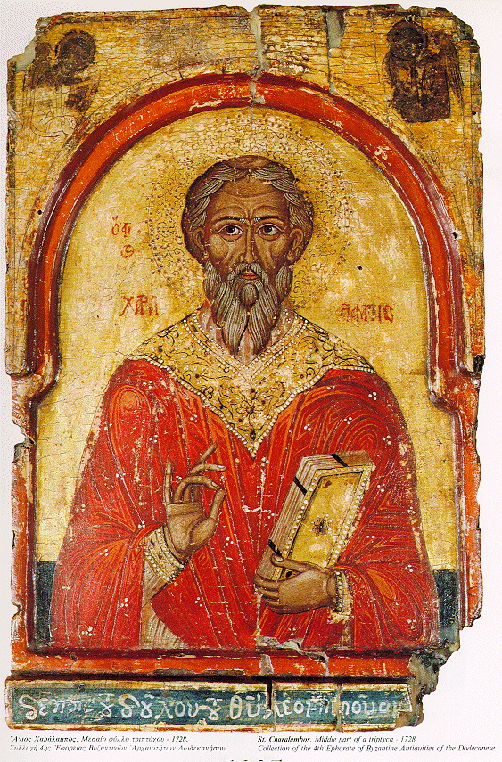 | Άγιοι που εορτάζουν: Αγιος Χαραλαμπος Ο Ιερομαρτυρας (85 - 198) | ||
