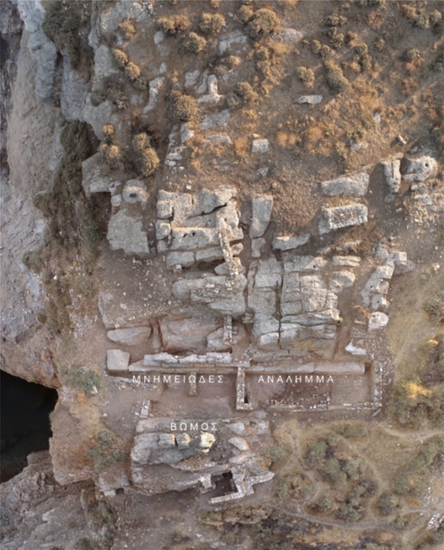 Επιπλέον οδηγούν στο συμπέρασμα ότι το ανάλημμα, που βρίσκεται εκεί κτίστηκε κατά τους κλασικούς χρόνους προκειμένου να δημιουργηθεί άνδηρο για την κατασκευή ναού, από τον οποίο σώζονται μόνον κάποια λαξεύματα στο ριζιμιό βράχο. Κι αυτό γιατί στη συνέχεια αναπτύχθηκε εκεί ένας πρωτοβυζαντινός οικισμός.