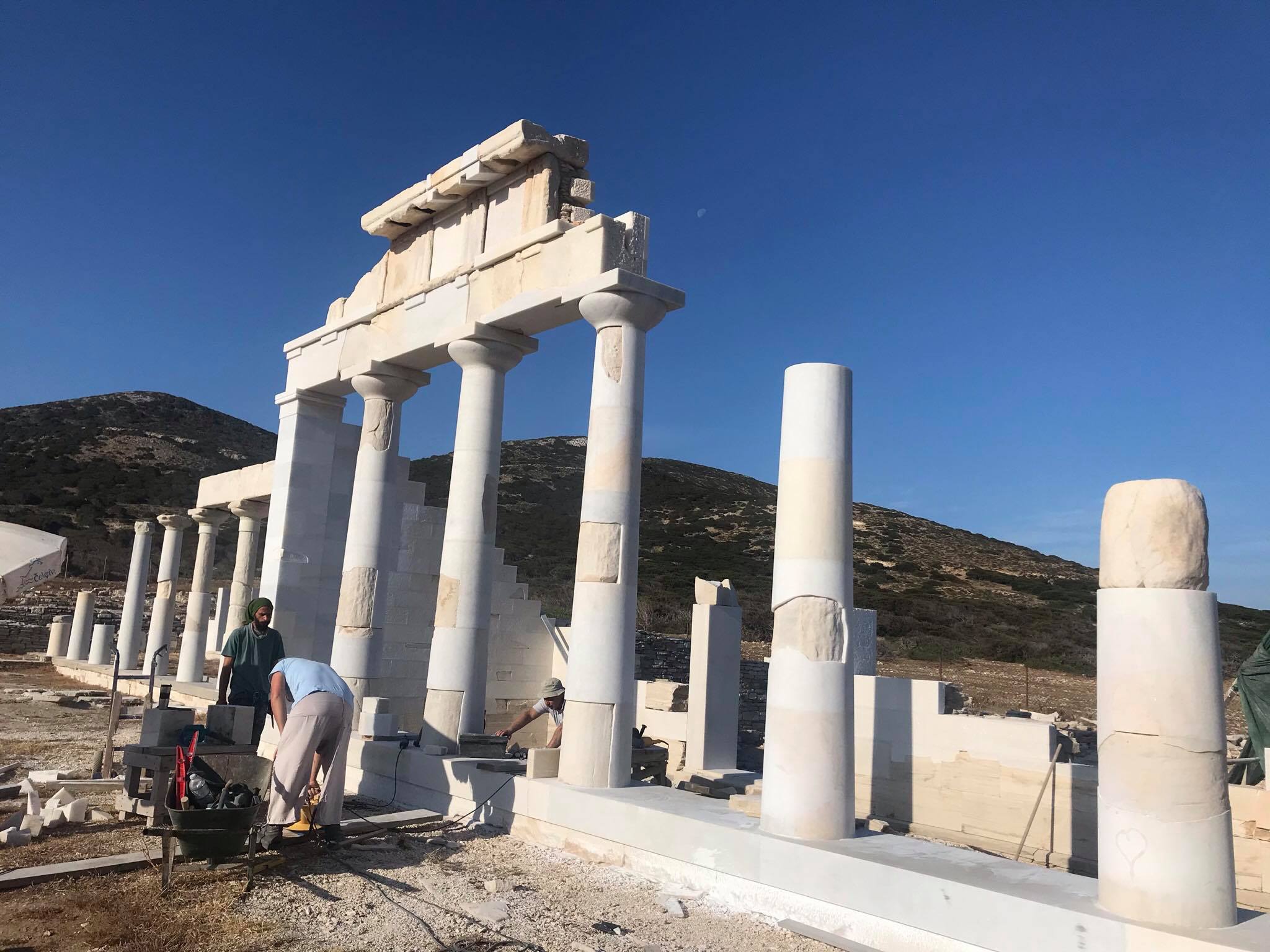 Μετά από αρκετούς μήνες επίπονης και επισταμένης εργασίας, ολοκληρώθηκαν όμως φέτος οι εργασίες αναστήλωσης στον αρχαϊκό ναό και το εστιατόριο του ιερού του Απόλλωνα. Ήδη από τον Οκτώβριο του 2020, μετά την απομάκρυνση της σκαλωσιάς, είναι πλέον κατανοητή η τρίτη διάσταση του μνημείου που δεσπόζει στο χώρο. Συγκεκριμένα, φέτος έγιναν οι εξής εργασίες: συμπλήρωση στο προστώο του ναού της αρχικής φάσης του στυλοβάτη, προσαρμογή παραστάδων των θυρών του ναού, συμπλήρωση του δυτικού τοίχου των δωματίων του ναού, τελικές επεξεργασίες των προσόψεων των δωματίων του ναού. Οι εργασίες πραγματοποιηθήκαν υπό την επίβλεψη του αρχιτέκτονα Γ. Ορεστίδη και τους μαρμαροτεχνίτες Β. Χατζή, Λ. Ιωάννου, Μ. Αρμάο, Γ. Κοντονικολάου, Γ. Σκαρή, Γ. Παλαμάρη.