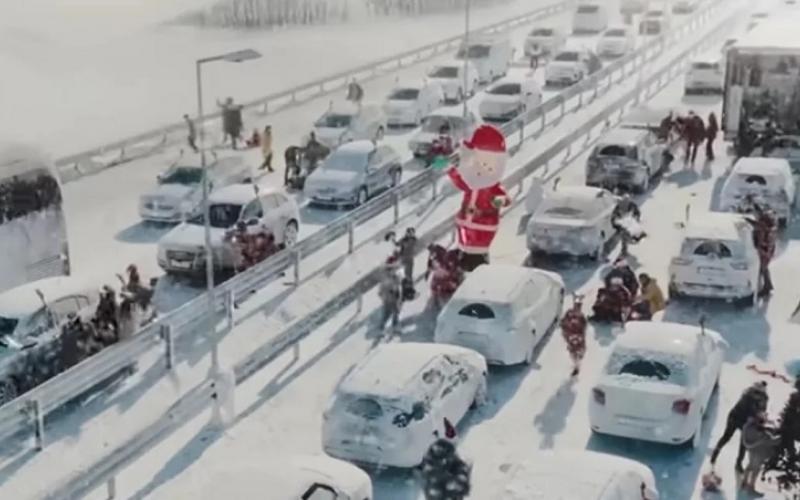 Το σκηνικό ξεκινάει με δεκάδες αυτοκίνητα, μεταξύ των οποίων και ένα στρατιωτικό όχημα με πινακίδες 25-12-2025, να είναι εγκλωβισμένα σε κάποια εθνική οδό, λόγω σφοδρής χιονόπτωσης. Οι οδηγοί και οι επιβάτες είναι παγιδευμένοι σε ένα τεράστιο μποτιλιάρισμα, ενώ το χιόνι πέφτει πυκνό.